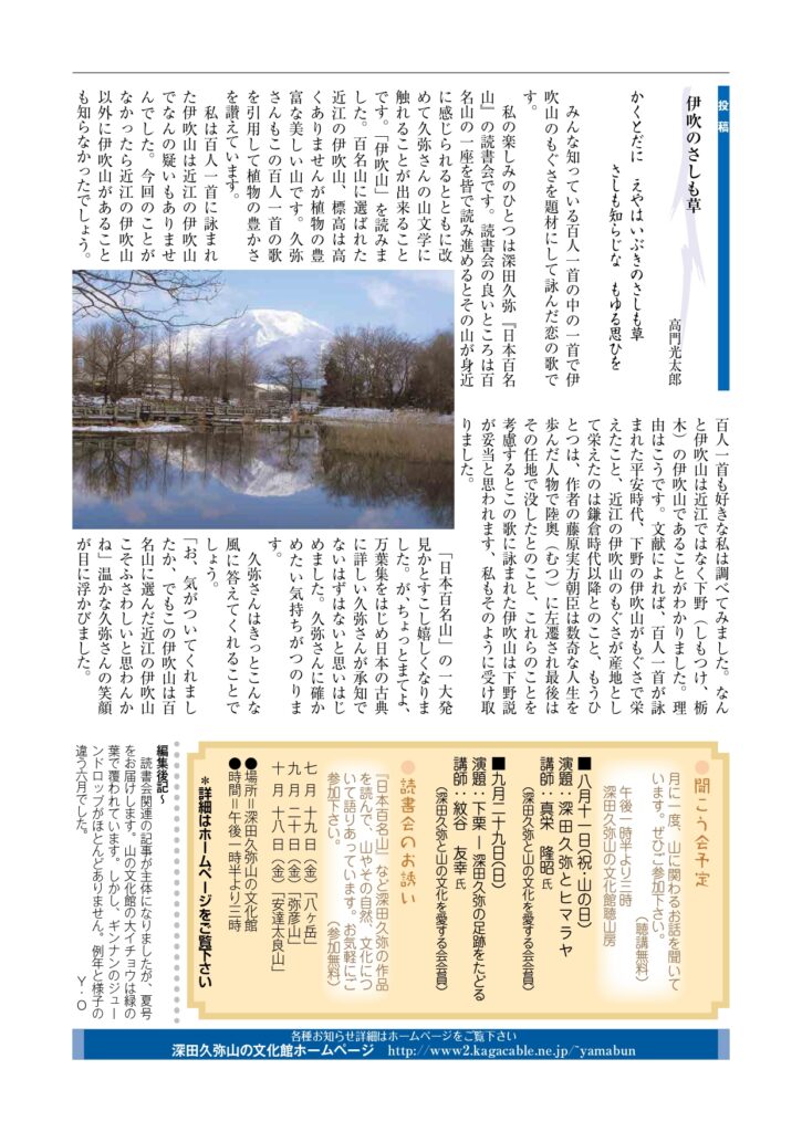 山文だより よかったらシェアしてね! URLをコピーしました! 山の文化館だより 平成31年春号 山の文化館だより 令和元年秋号 関連記事 山の文化館だより 令和8年冬号 2026年1月11日 山の文化館だより 令和7年秋号 2025年10月30日 山の文化館だより 令和7年夏号 2025年7月14日 山の文化館だより 令和7年春号 2025年4月24日 山の文化館だより令和7年冬号 2025年2月6日 山の文化館だより 令和6年秋号 2024年10月1日 山の文化館だより 令和6年夏号 2024年8月2日 山の文化館だより 2024年4月12日