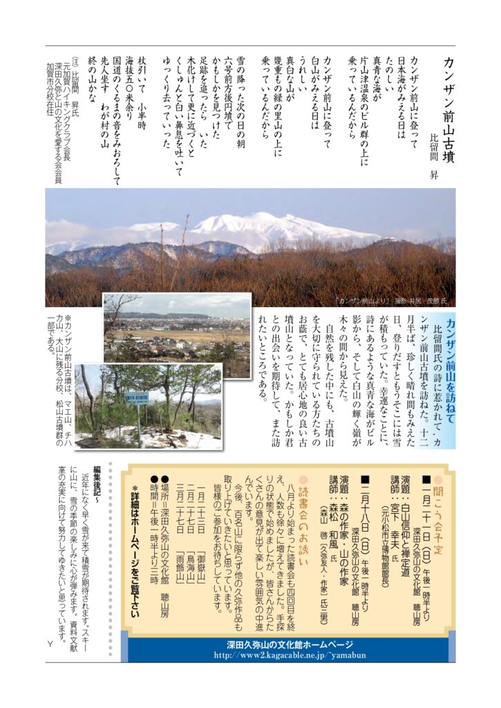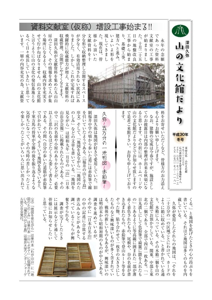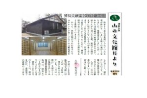 山文だより よかったらシェアしてね! URLをコピーしました! 山の文化館だより 平成29年秋号 山の文化館だより 平成30年春号 関連記事 山の文化館だより 令和8年冬号 2026年1月11日 山の文化館だより 令和7年秋号 2025年10月30日 山の文化館だより 令和7年夏号 2025年7月14日 山の文化館だより 令和7年春号 2025年4月24日 山の文化館だより令和7年冬号 2025年2月6日 山の文化館だより 令和6年秋号 2024年10月1日 山の文化館だより 令和6年夏号 2024年8月2日 山の文化館だより 2024年4月12日