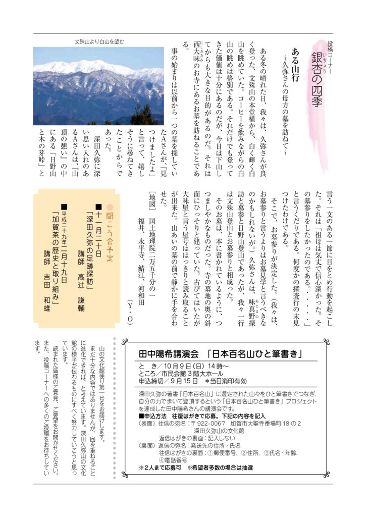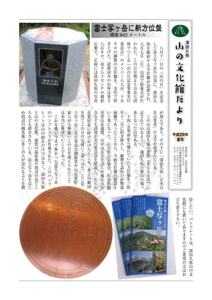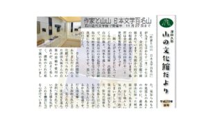 山文だより よかったらシェアしてね! URLをコピーしました! 山の文化館だより 平成28年秋号 関連記事 山の文化館だより 令和8年冬号 2026年1月11日 山の文化館だより 令和7年秋号 2025年10月30日 山の文化館だより 令和7年夏号 2025年7月14日 山の文化館だより 令和7年春号 2025年4月24日 山の文化館だより令和7年冬号 2025年2月6日 山の文化館だより 令和6年秋号 2024年10月1日 山の文化館だより 令和6年夏号 2024年8月2日 山の文化館だより 2024年4月12日