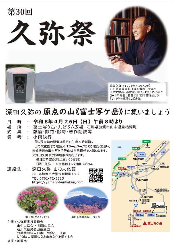 今年は没後55年の節目の年でもあり、久弥が最初に登った山富士写ヶ岳の麓で、深田久弥を偲びたいと思います。